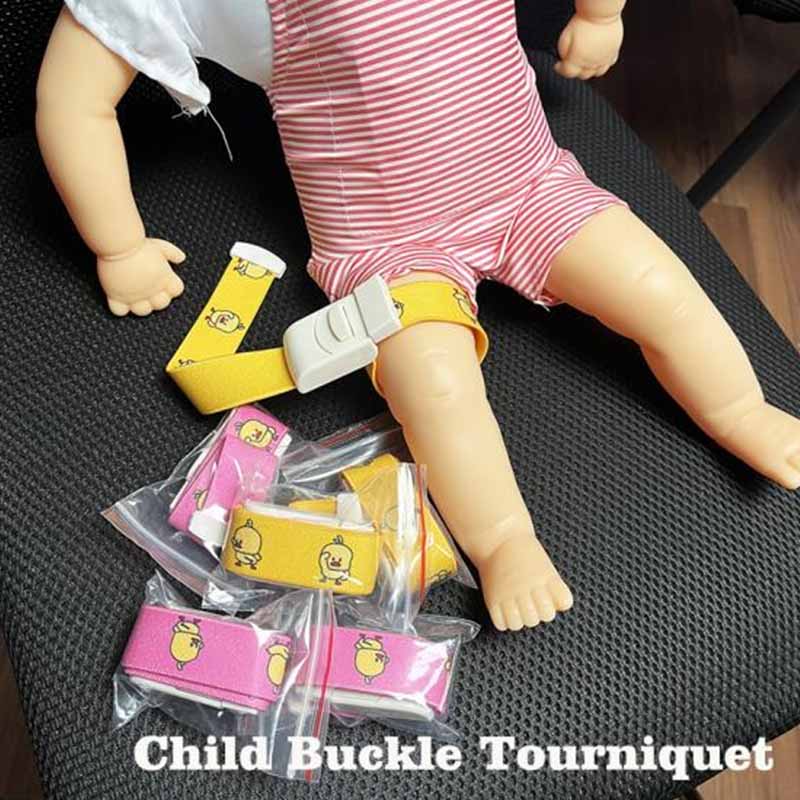 Dětské škrtidlo se sponou, vyrobené z měkkého a elastického materiálu. Ve srovnání s škrtidlem pro dospělé jsou škrtidla s přezkami pro děti dimenzována na dětské ruce nebo nohy. Umožňují přesnou kontrolu krvácení bez vyvíjení nadměrného tlaku na cévy a pokožku dětí.